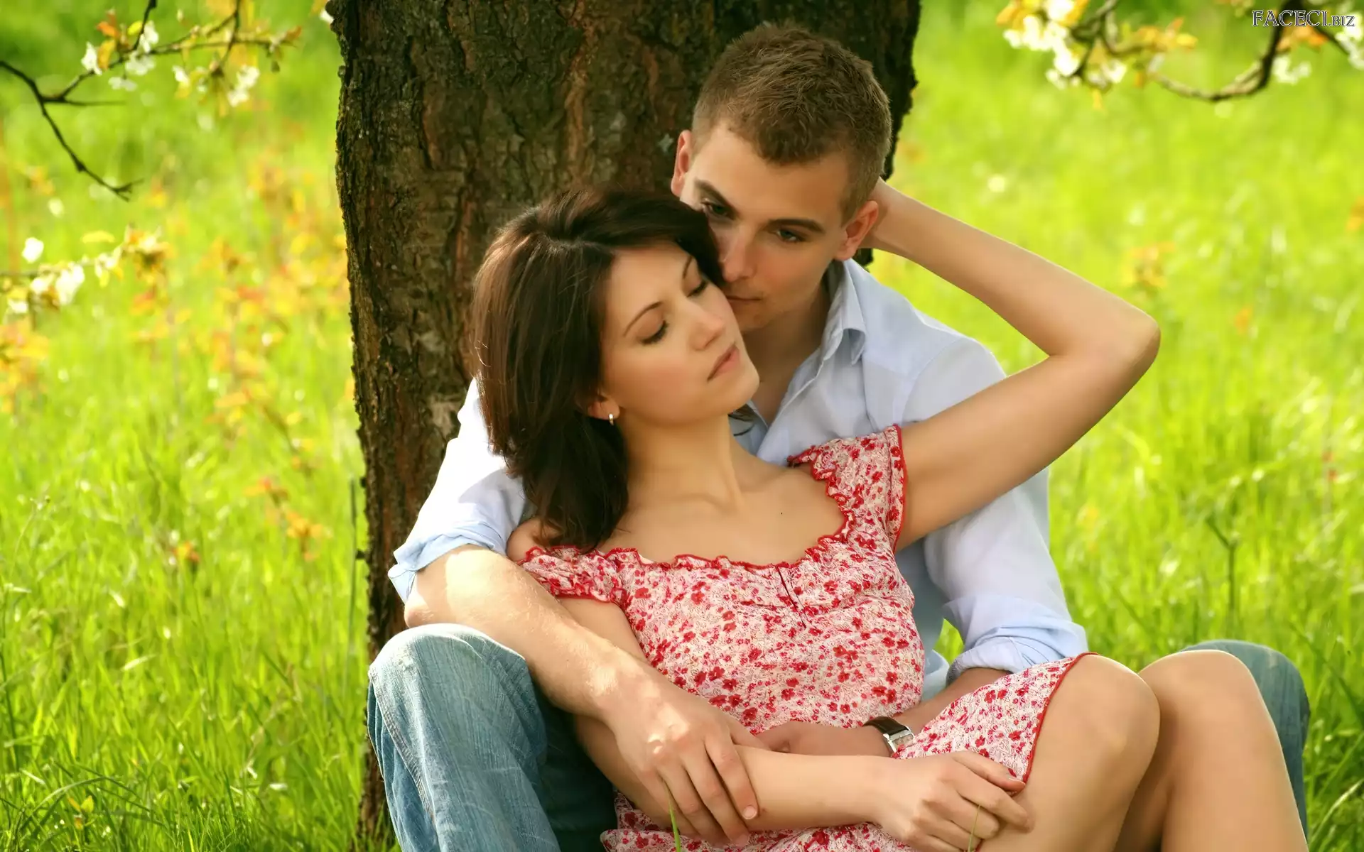 Zakochana, Para, Drzewo, Trawa - faceci.biz